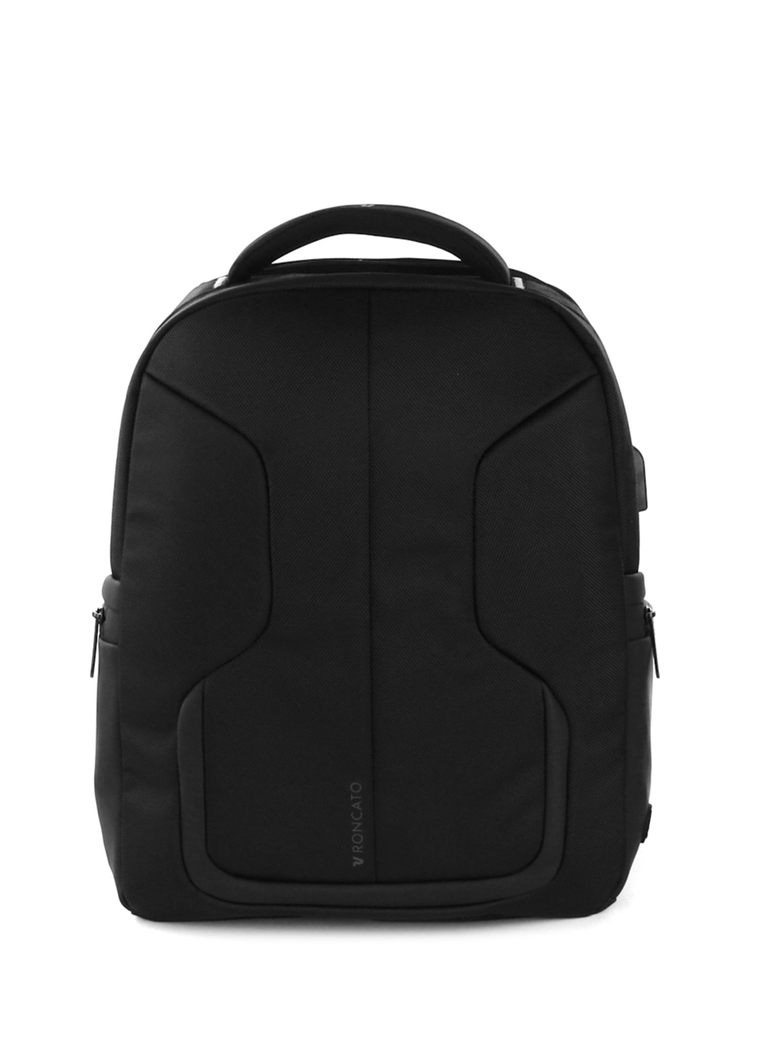 It has a USB port. You can place it under your seat on the plane. 40 x 33 x 16 cm. Holder for 14″ Laptop and 10″ Tablet.